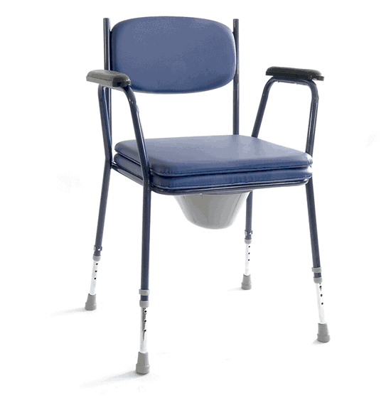 Καρέκλα μπάνιου µε αδιάβροχη επένδυση. Το ύψος είναι ρυθμιζόμενο για εύκολη εφαρμογή πάνω από την λεκάνη της τουαλέτας. Κάθισμα µε οπή και δοχείο WC µε καπάκι. Συνοδεύεται επιπλέον από κάθισμα για περισσότερη άνεση.