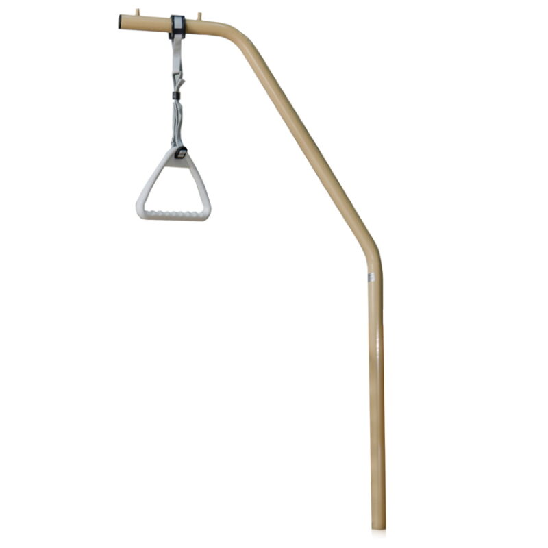 Αναρτήρας έλξης – ανύψωσης AC-851Α Βοηθά τον ασθενή να σηκώνεται από την ύπτια στην καθιστή θέση. Μεταλλικός σκελετός Τρίγωνη, ανατομική λαβή Προσαρμόζεται με ασφάλεια στις μετώπες των κλινών της alfacare Μέγιστο βάρος χρήστη 110 Kg
