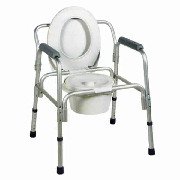 Κάθισμα Τουαλέτας Αλουμινίου AC 541 Μεταλλικός σκελετός με πλαστικό δοχείο, κουλούρα και καπάκι. Πτυσσόμενο για εύκολη μεταφορά και αποθήκευση. Κατάλληλο για χρήση ως αυτόνομη τουαλέτα σε περιπτώσεις ατόμων με μεγάλη δυσκολία μετακίνησης. Διαθέτει φαρδύ κάθισμα.