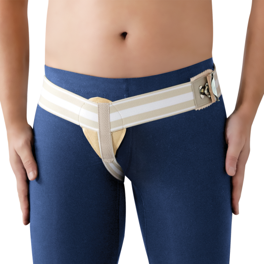 - Ενσωματωμένη σταθερή και ανατομική πελότα για την υποστήριξη της βουβωνοκήλης