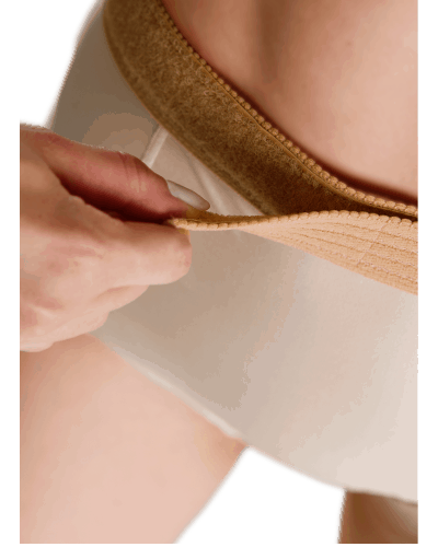 - Η διαβάθμιση της συμπίεσης είναι απόλυτα εναρμονισμένη με αυτή του κυκλοφορικού συστήματος, παρέχοντας το 100% της επιθυμητής ασκούμενης συμπίεσης στον αστράγαλο, το 70% στη γάμπα και το 40% στο μηρό.